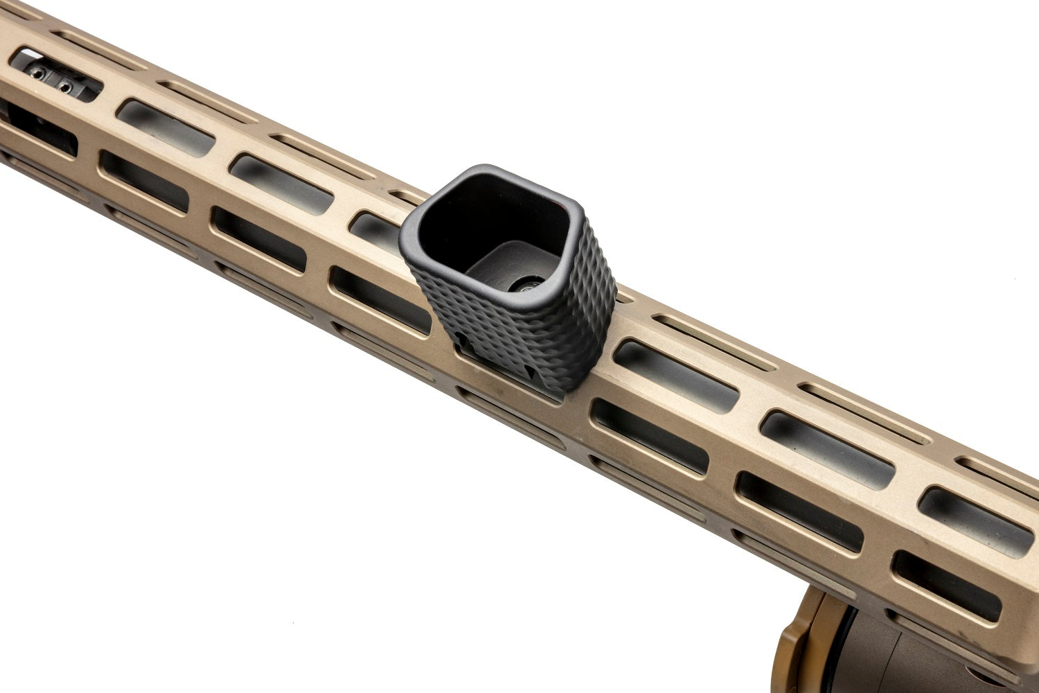 M-LOK version securely attaches with one screw and uses one MLOK slot. 1.75 ounces with included nut and screw. Use 1/8" hex bit to install. Designed to fit standard size M-LOK handguards, no wider than .725" across the 6:00 flat. If you have a "suppressor size" / thick / thicc handguard, you should order our Picatinny version and a rail adapter panel separately.